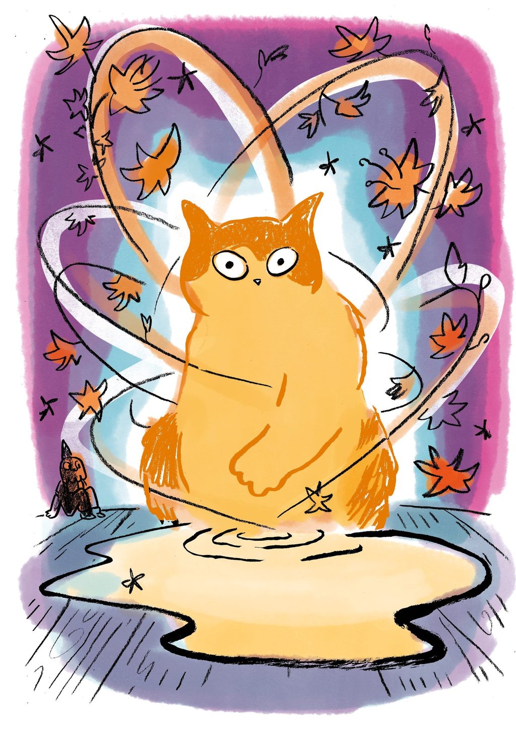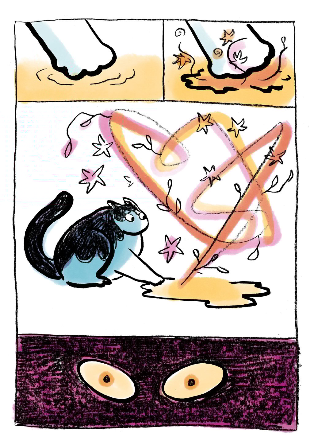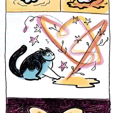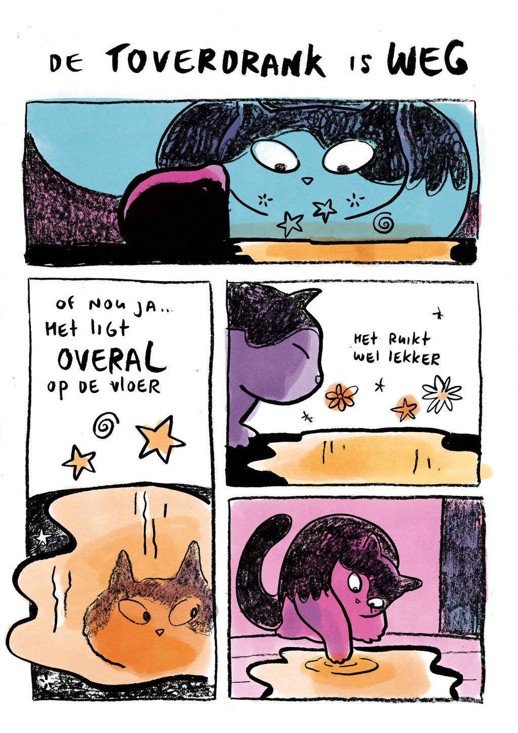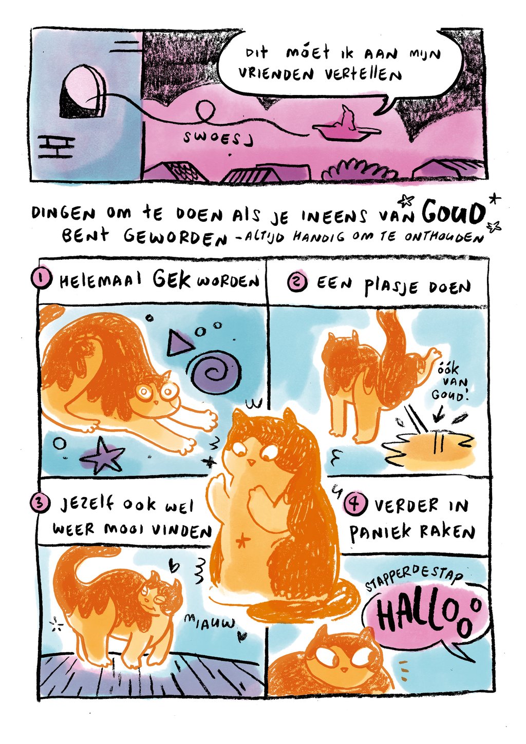 Hoop dat jullie het verhaal leuk vinden. Ik heb enorm gestoeid met de inkleuring van de gouden poes (ik photoshop het liefst zo min mogelijk maar hier ontkwam ik niet aan wat truukjes). Als je mij trouwens kent dan kun je in het laatste plaatje Eva spotten, met de kinderen, haha.